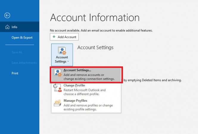1.Add your Google Workspace email account selecting Accounts Settings under the File > Info menu.