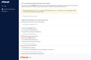 This interface allows you to configure the spam filter settings (powered by Apache SpamAssassin) for your account. Spam filters identify and sort or delete unsolicited email, commonly known as spam.